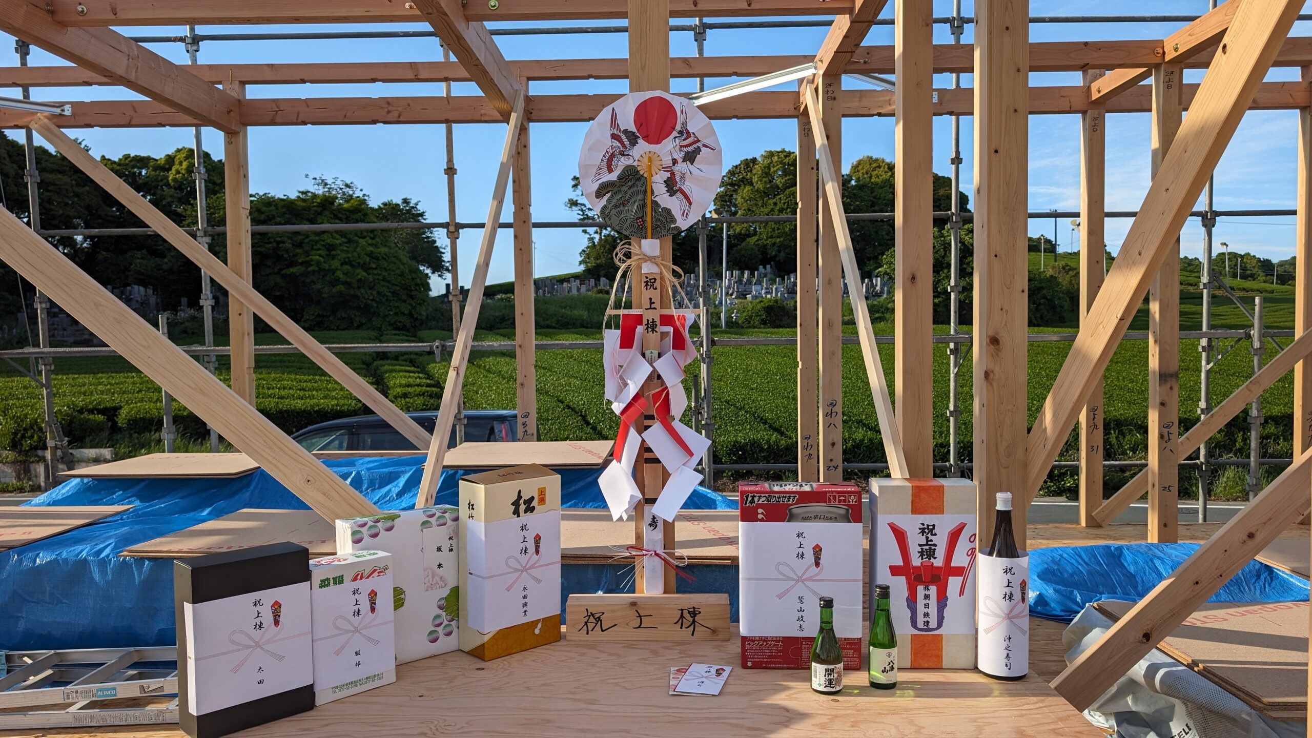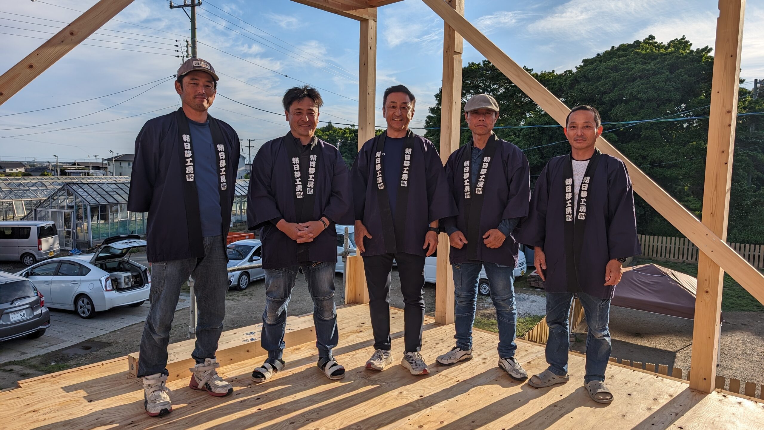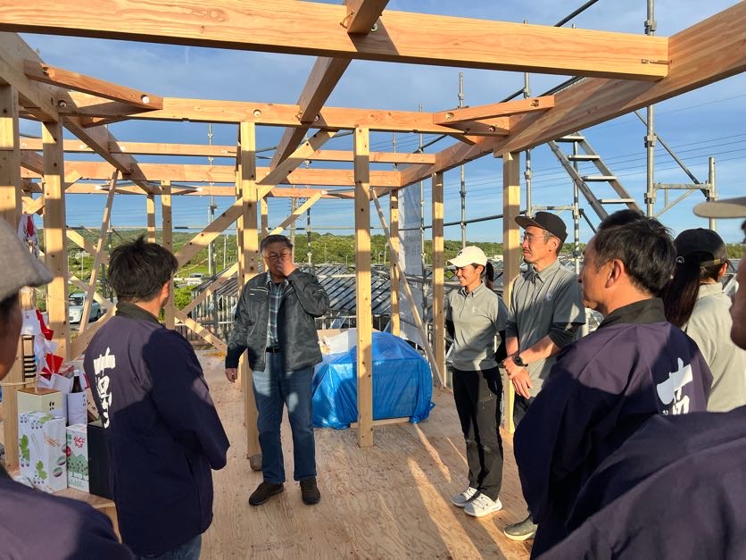 上棟式は、朝日社長に取り仕切って頂き、素晴らしい式になりました。また式終盤には、荻原社長が急遽参列してくださり、サプライズ登場となりました。お忙しい中駆け付けて頂き、本当にありがとうございました。
